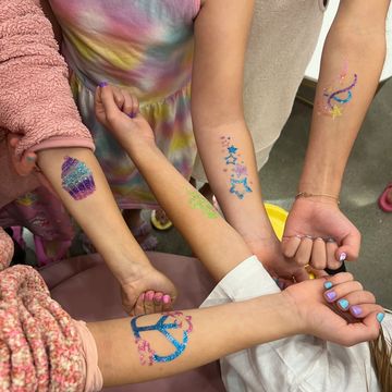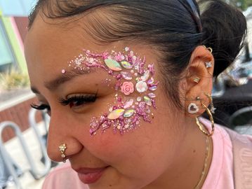 Festival Hair & Face Glitter, temporary hair coloring, quick up dos, and gems